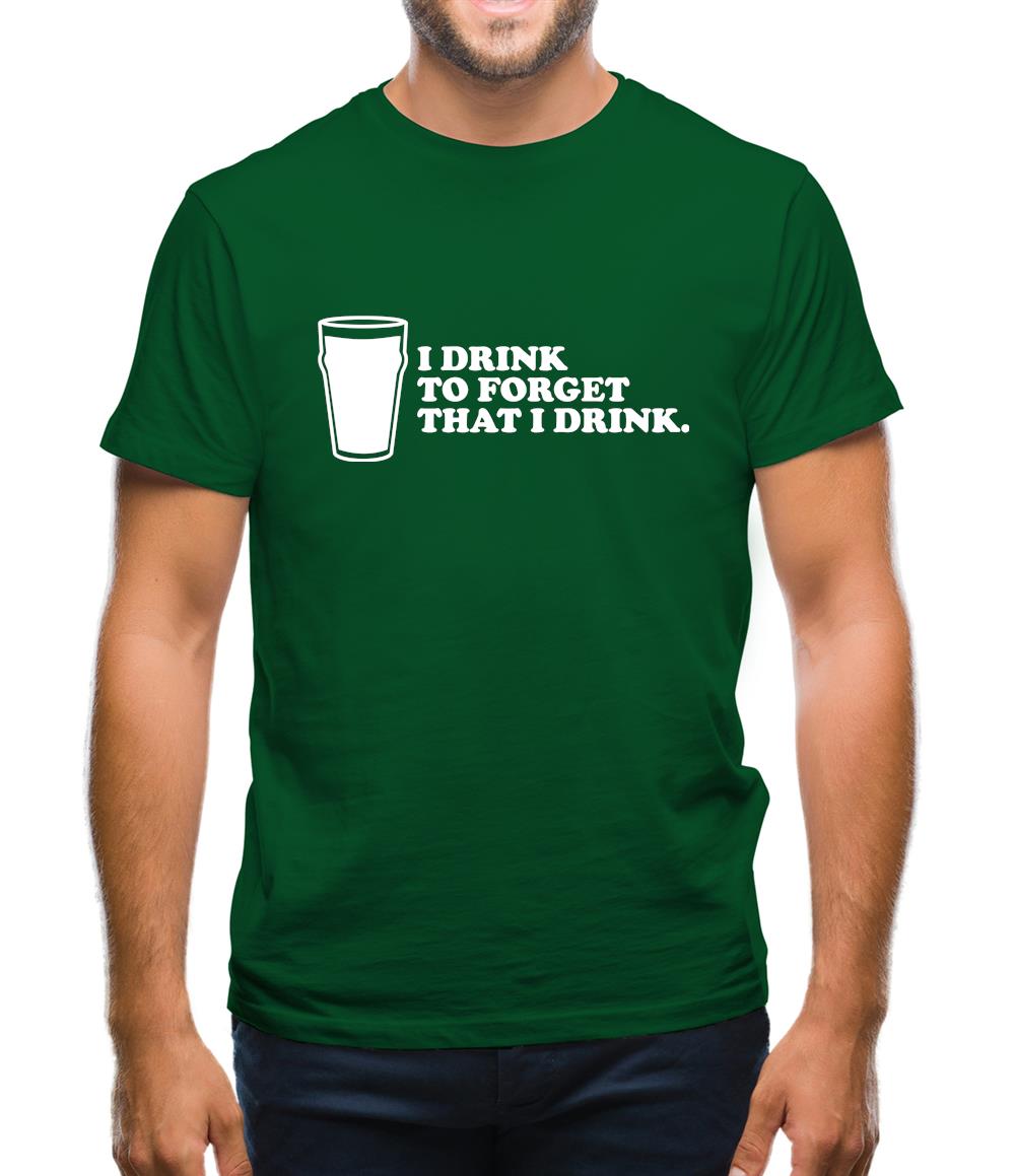 This I Drink To Forget That I Drink Mens T-Shirt is a 100% ringspun cotton, loose fit crewneck tee. Available in a great range of colours and sizes, it features a hard wearing & high quality print with our original 'I Drink To Forget That I Drink' design.