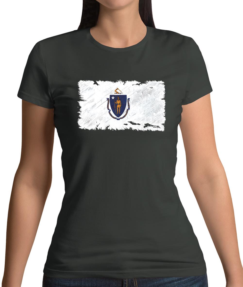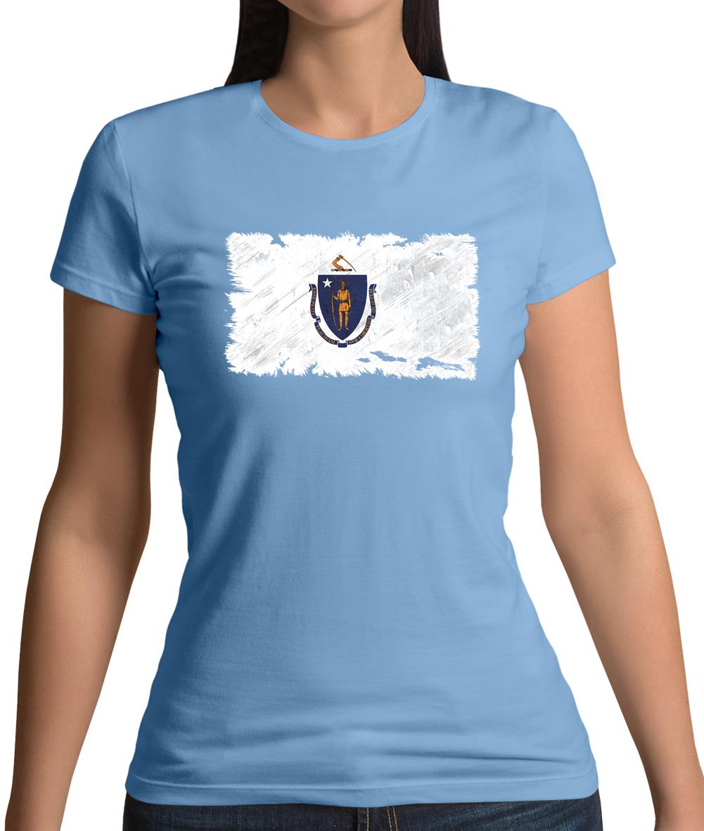This Massachusetts Grunge Style Flag Womens T-Shirt is a 100% ringspun cotton, slim fit crewneck tee. Available in a great range of colours and sizes, it features a hard wearing & high quality print with our original 'Massachusetts Grunge Style Flag' design.
