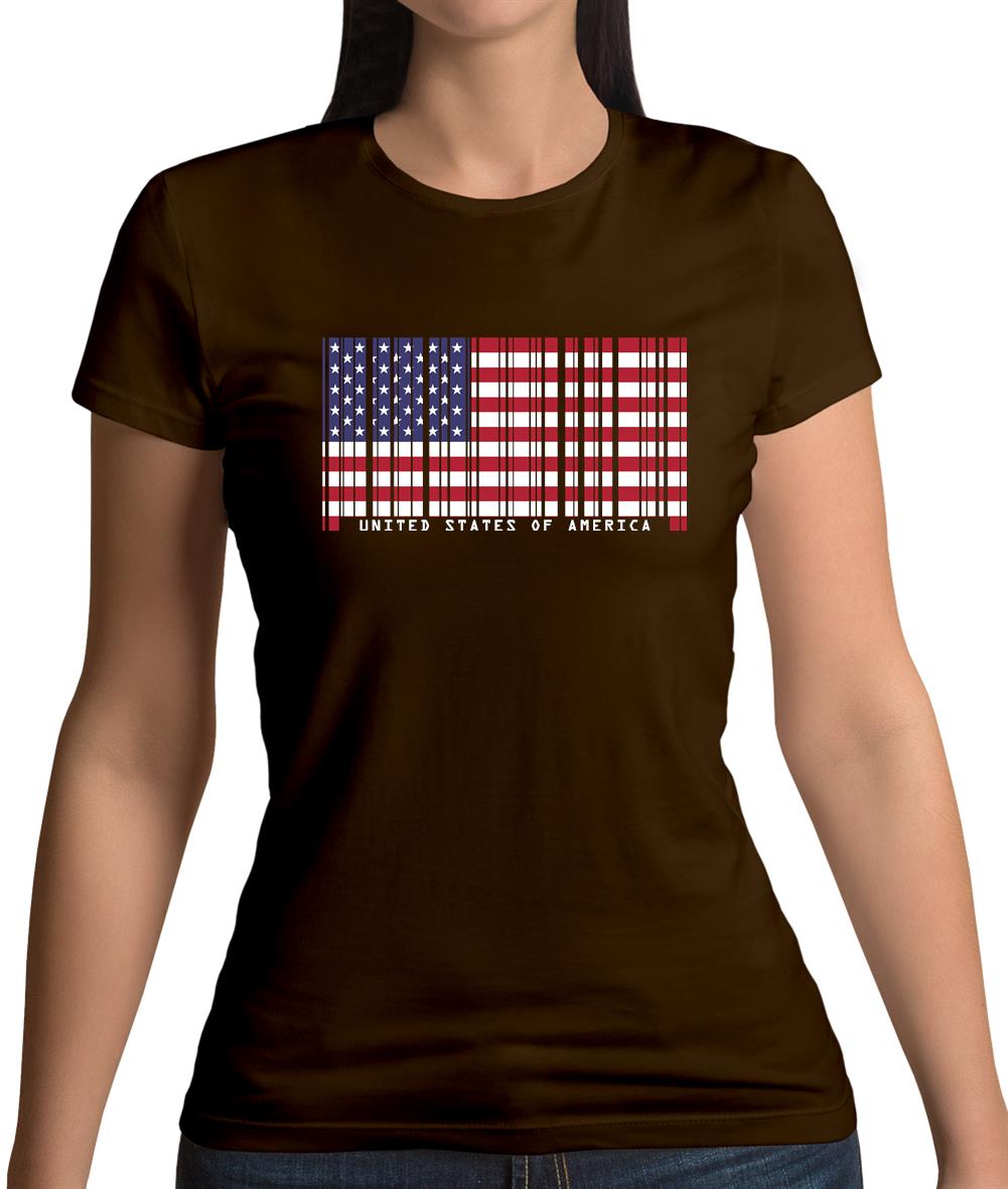 This Usa Barcode Style Flag Womens T-Shirt is a 100% ringspun cotton, slim fit crewneck tee. Available in a great range of colours and sizes, it features a hard wearing & high quality print with our original 'Usa Barcode Style Flag' design.