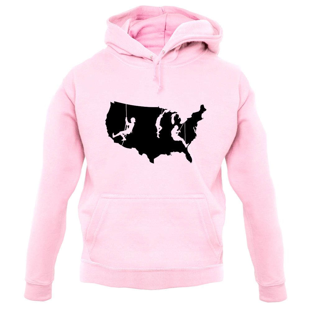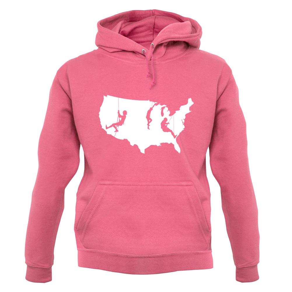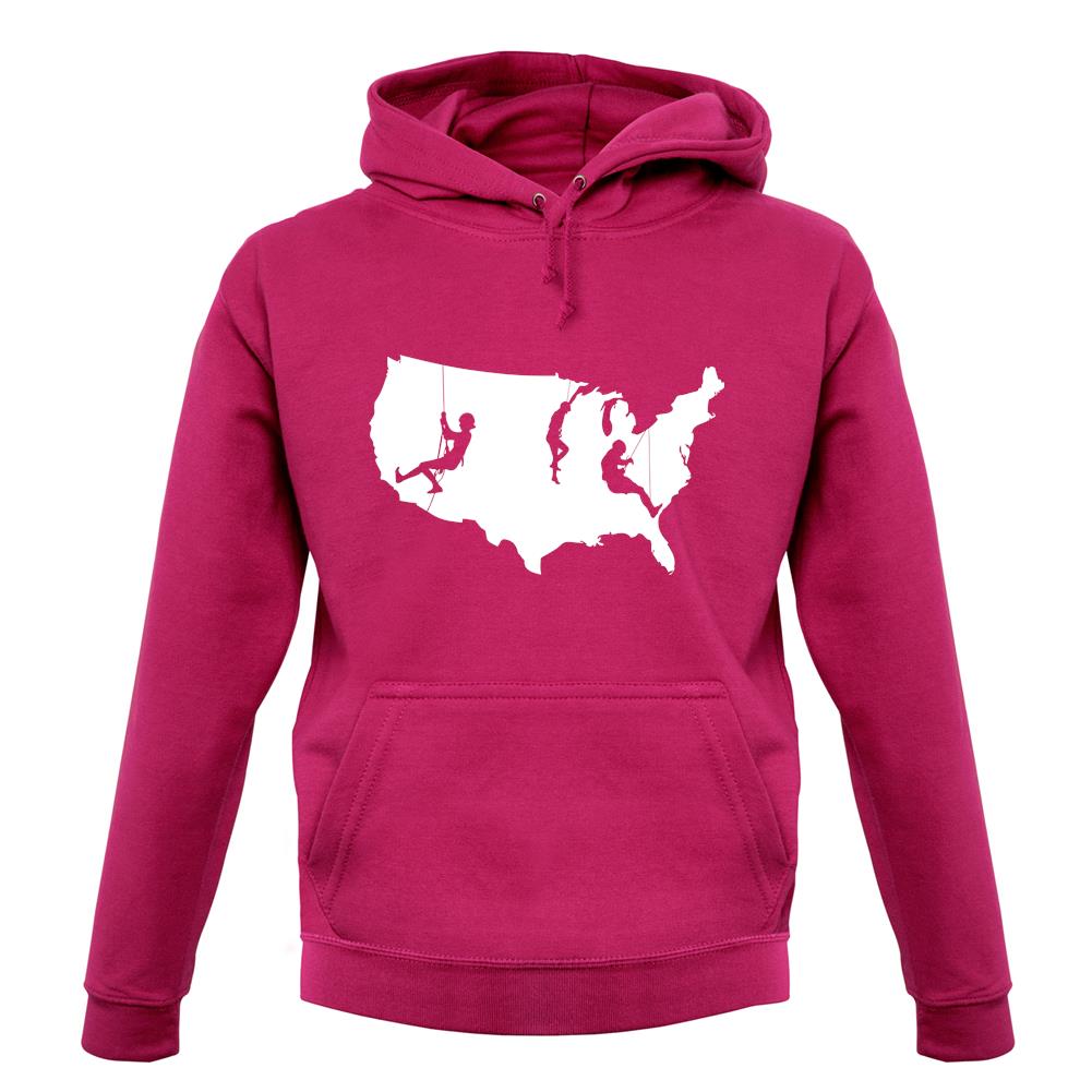 This USA Climbing Unisex Hoodie is loose fit adult hooded top with kangaroo pocket. Available in a great range of colours and sizes, it features a hard wearing & high quality print with our original 'USA Climbing' design.