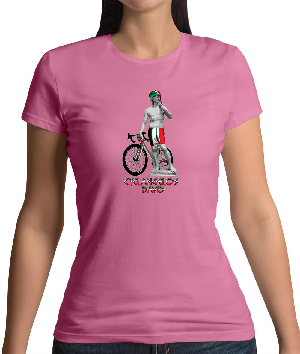 This Cyclangelo'S David Womens T-Shirt is a 100% ringspun cotton, slim fit crewneck tee. Available in a great range of colours and sizes, it features a hard wearing & high quality print with our original 'Cyclangelo'S David' design.