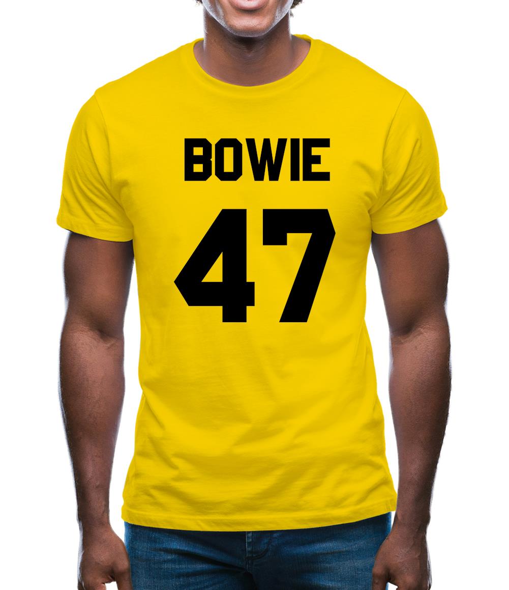This Bowie 47 Mens T-Shirt is a 100% ringspun cotton, loose fit crewneck tee. Available in a great range of colours and sizes, it features a hard wearing & high quality print with our original 'Bowie 47' design.
