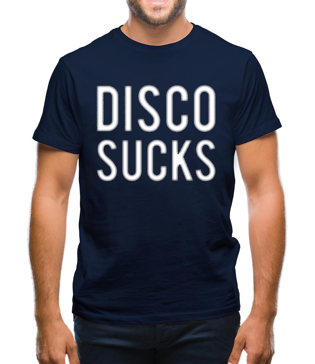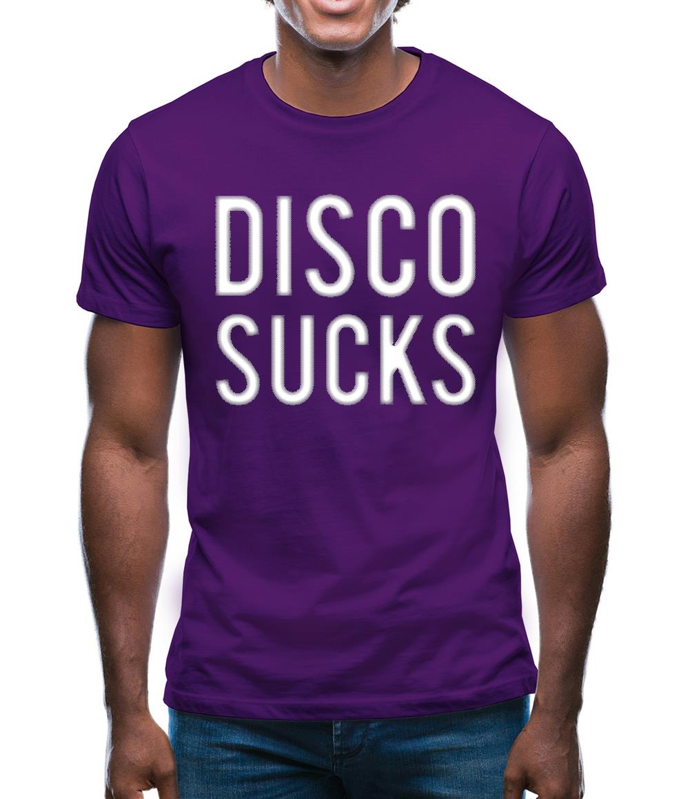 This Disco Sucks Mens T-Shirt is a 100% ringspun cotton, loose fit crewneck tee. Available in a great range of colours and sizes, it features a hard wearing & high quality print with our original 'Disco Sucks' design.