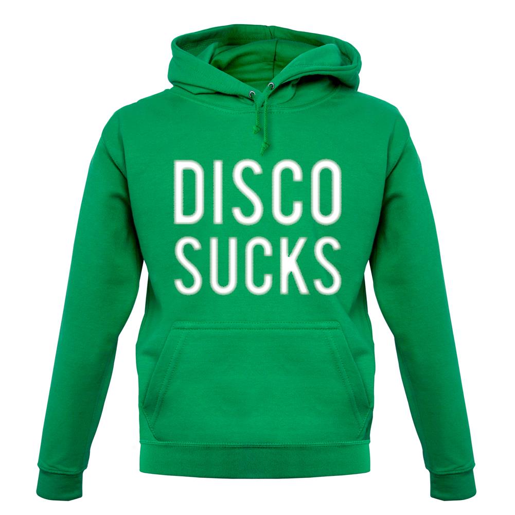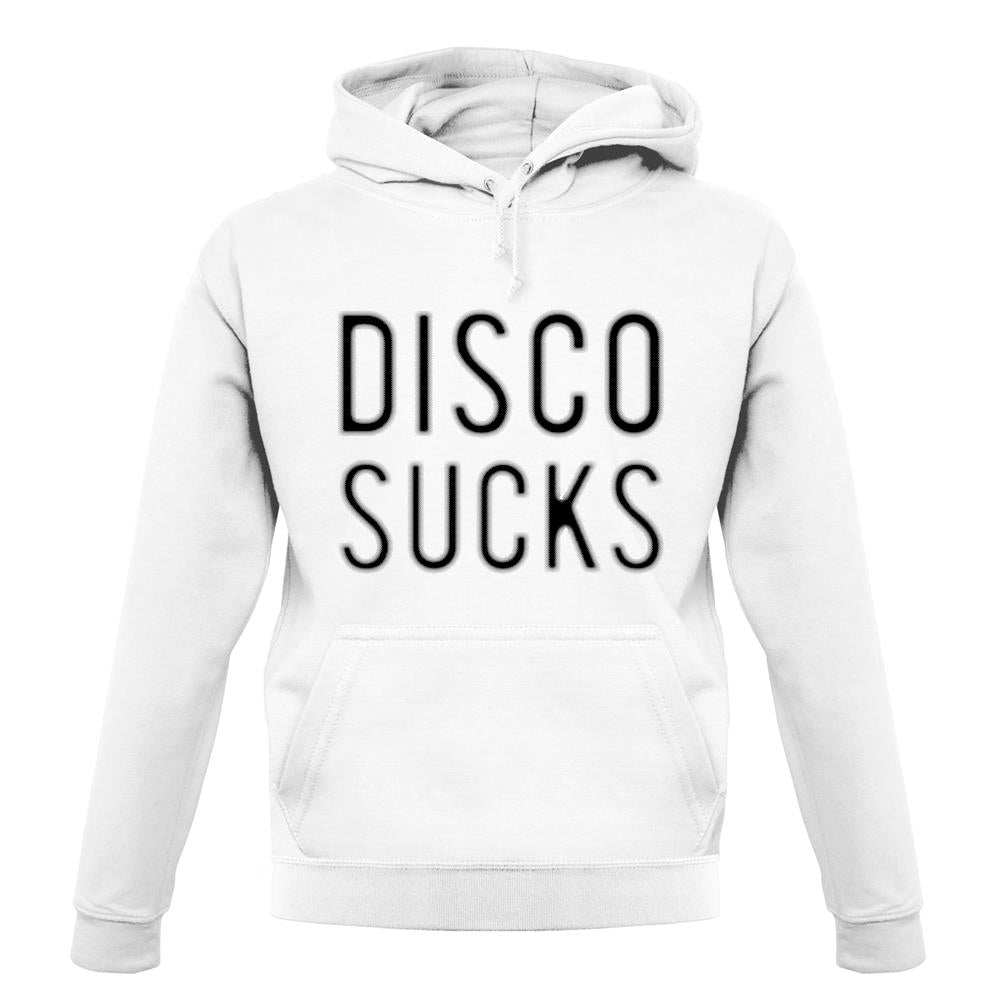 This Disco Sucks Unisex Hoodie is loose fit adult hooded top with kangaroo pocket. Available in a great range of colours and sizes, it features a hard wearing & high quality print with our original 'Disco Sucks' design.