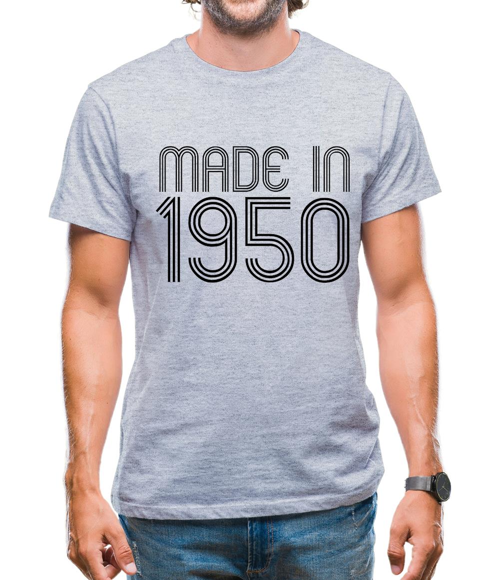 This Made In 1950 Mens T-Shirt is a 100% ringspun cotton, loose fit crewneck tee. Available in a great range of colours and sizes, it features a hard wearing & high quality print with our original 'Made In 1950' design.