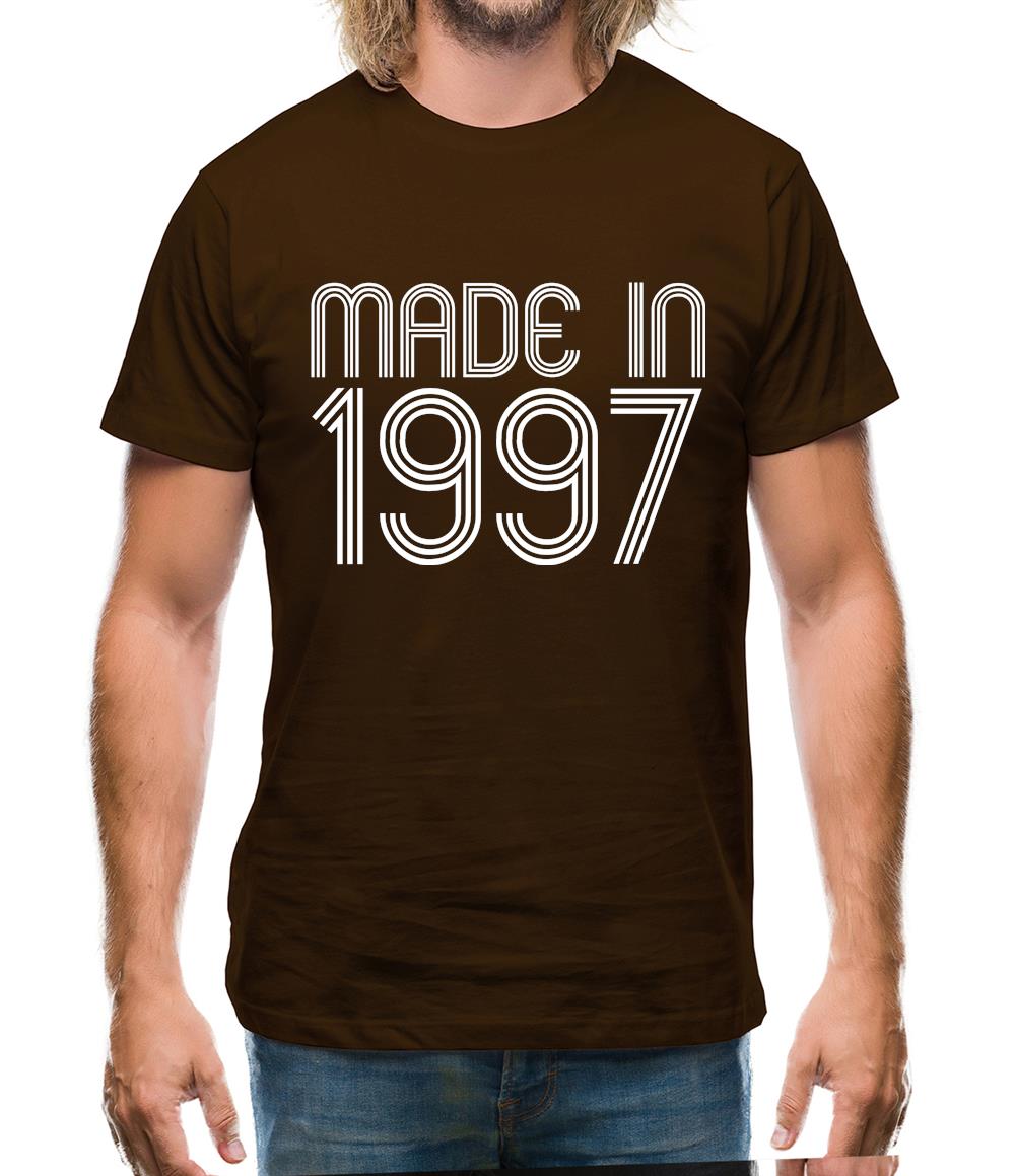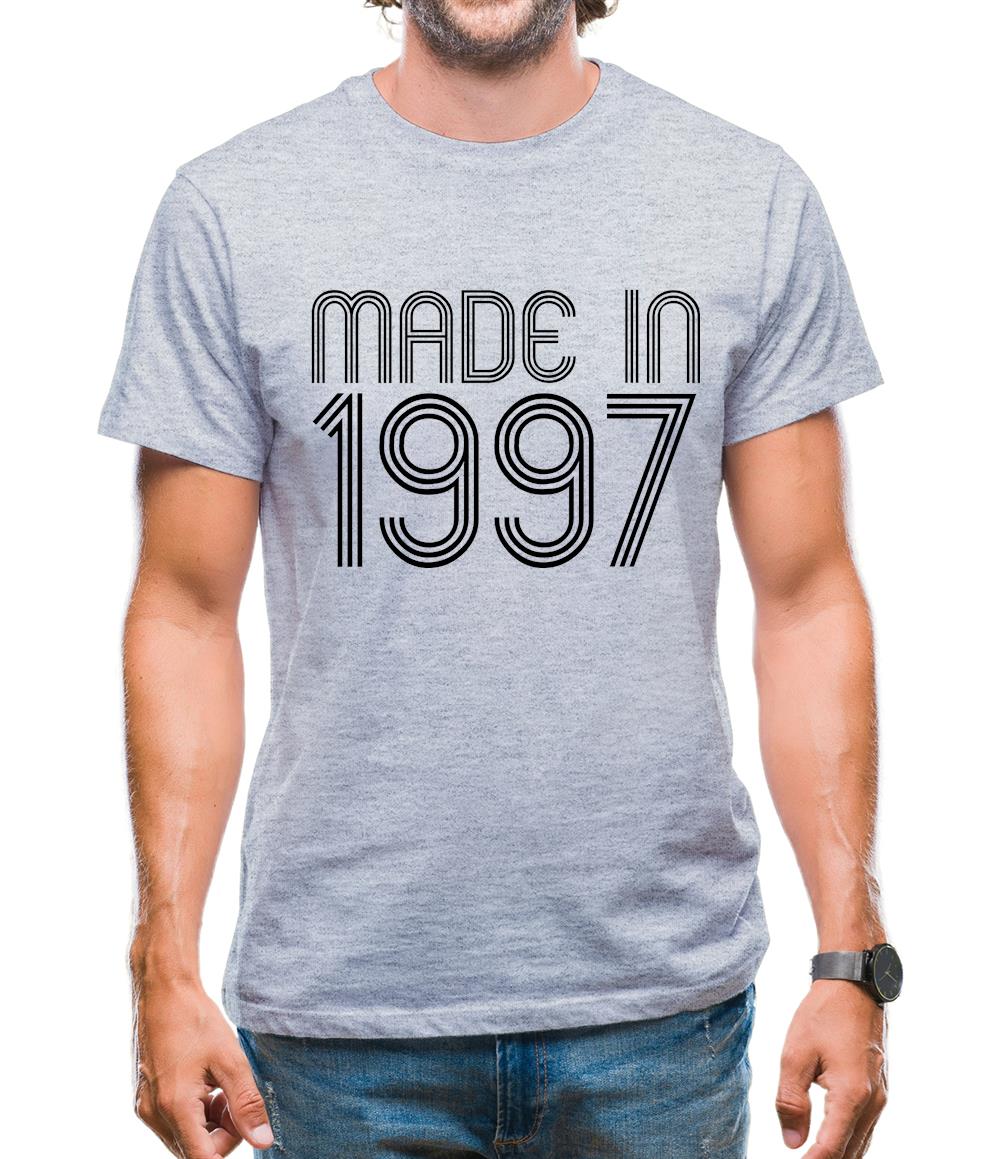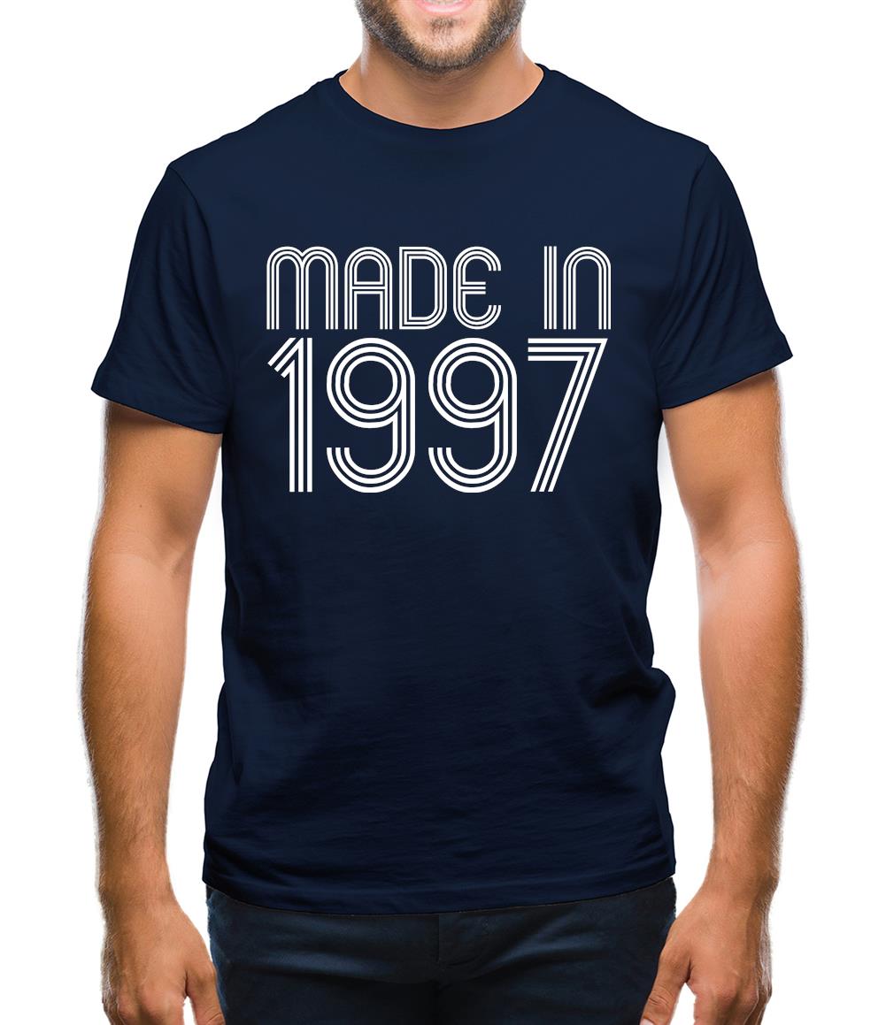 This Made In 1997 Mens T-Shirt is a 100% ringspun cotton, loose fit crewneck tee. Available in a great range of colours and sizes, it features a hard wearing & high quality print with our original 'Made In 1997' design.
