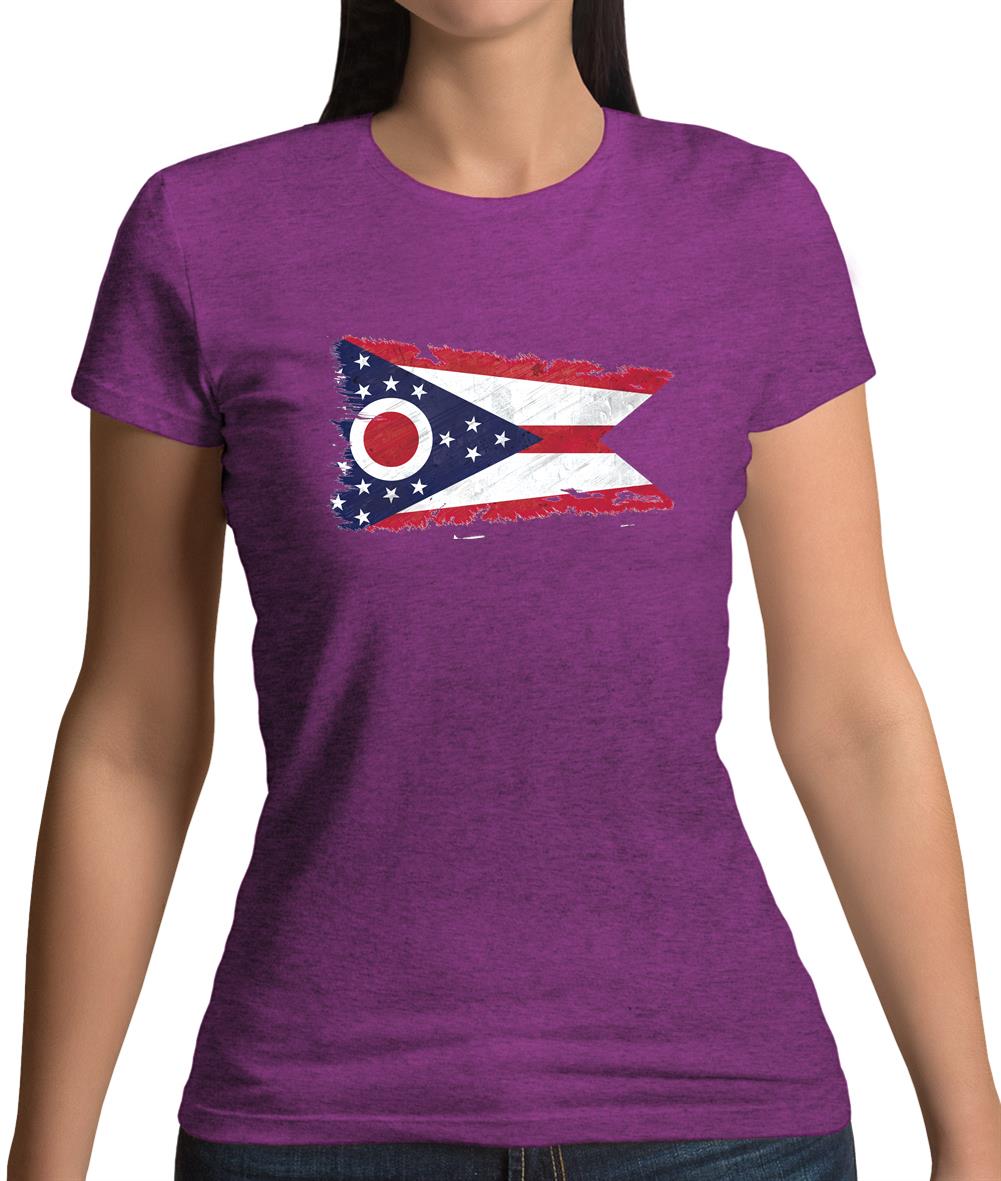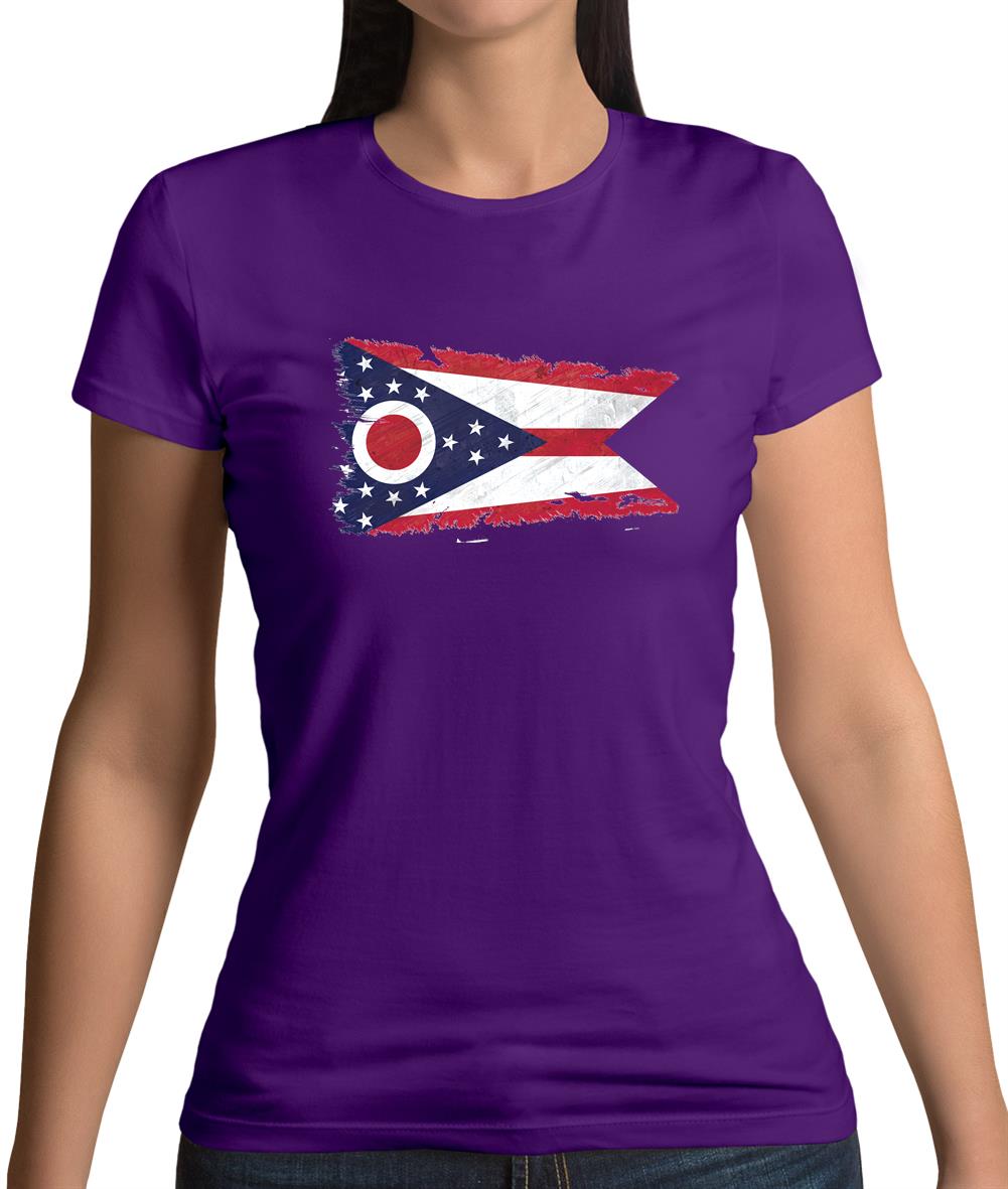 This Ohio Grunge Style Flag Womens T-Shirt is a 100% ringspun cotton, slim fit crewneck tee. Available in a great range of colours and sizes, it features a hard wearing & high quality print with our original 'Ohio Grunge Style Flag' design.